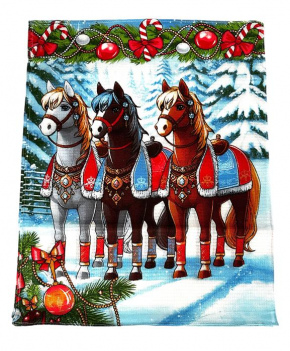 СИМВОЛ ГОДА 2026 Салфетка д/кухни вафел. 45*60см Зимняя тройка лошадей…