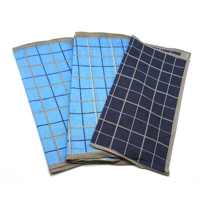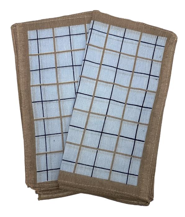 Платок носовой тканевый Мужской 30*30 Голубой в бежевую клетку (мин.10шт)