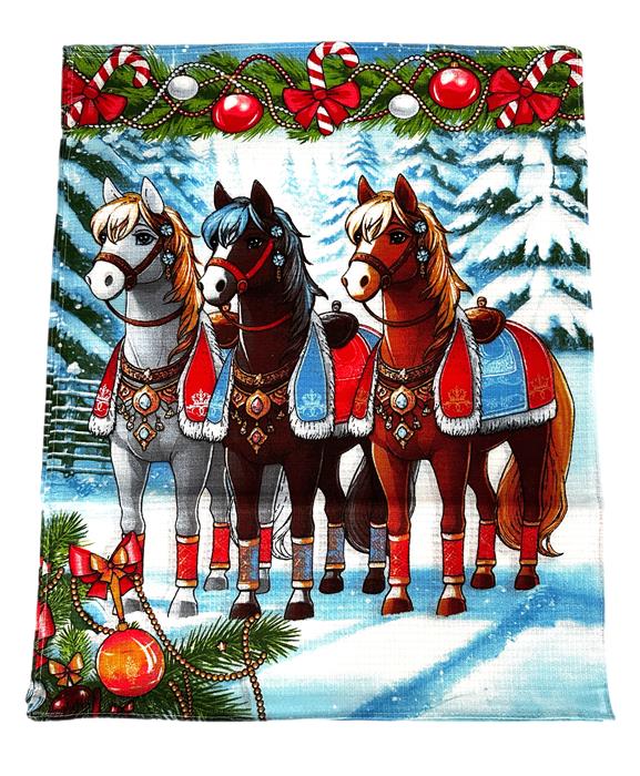 СИМВОЛ ГОДА 2026 Салфетка д/кухни вафел. 45*60см Зимняя тройка лошадей (мин.10шт)