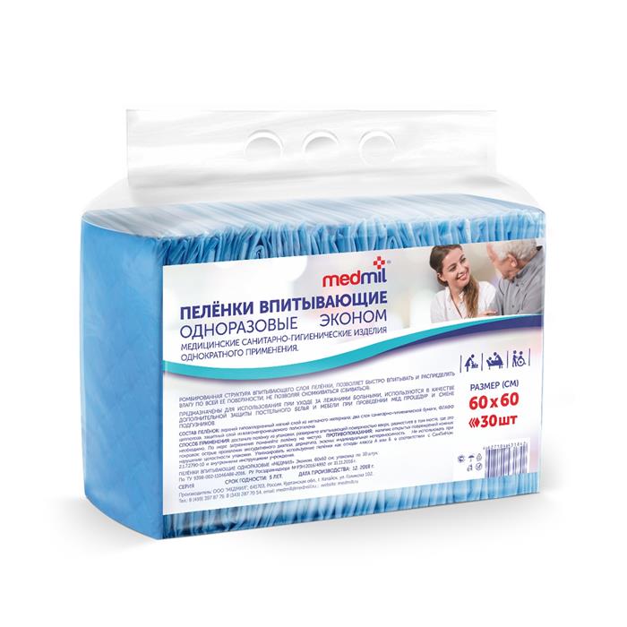 Пеленки впит.д/животных Медмил Эконом 60*60 /30шт.