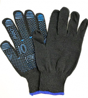 Перчатки хоз. х/б ЧЁРНЫЕ Зимние Двойные с пвх с точкой 95г