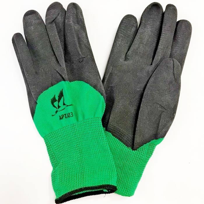Перчатки Облитые хоз. Нейлоновые с нитриловым покр. Люкс Зелено-черные (вып.по 12шт.)
